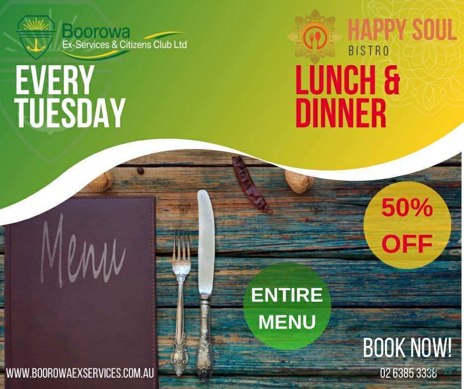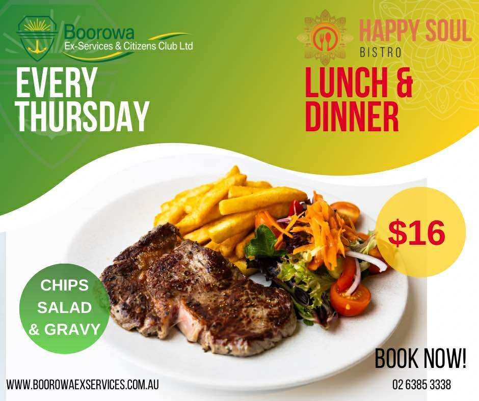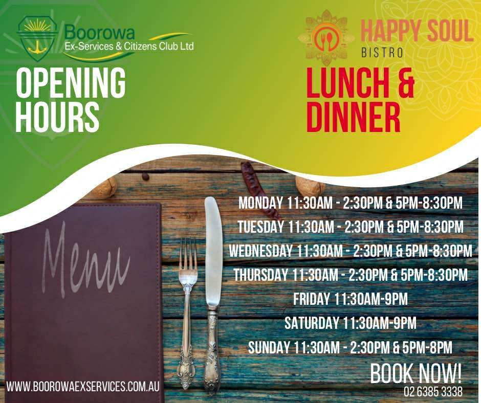 Enjoy your favourite club meals your way — dine in with us or grab a takeaway to enjoy at home. Boorowa Ex-Services & Citizens Club is now serving up the same delicious food for both options, cooked fresh and full of flavour. Relax in our dining area, play a few games of darts or Keno, or order ahead and pick up something tasty for the family.